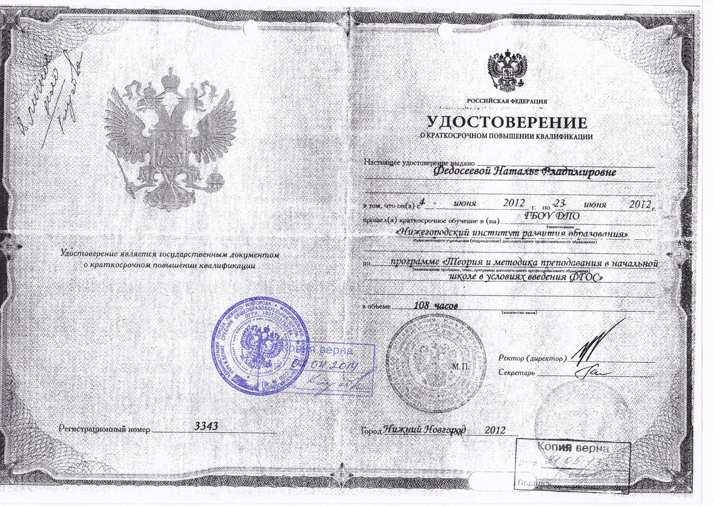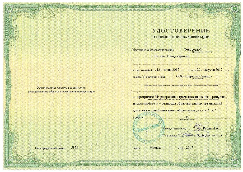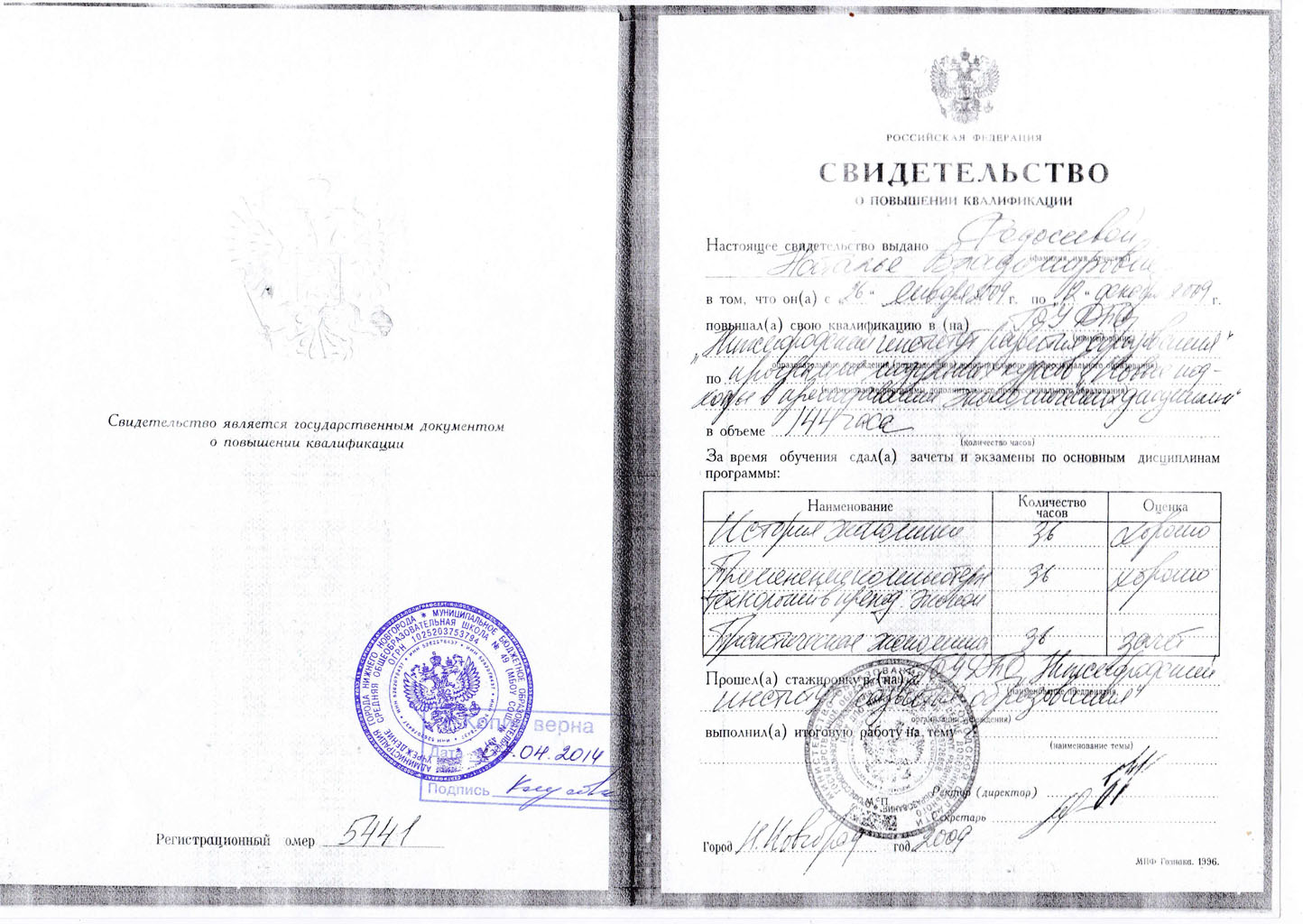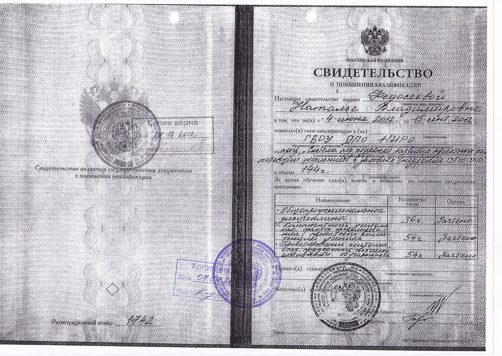 Сведения о повышение квалификации: