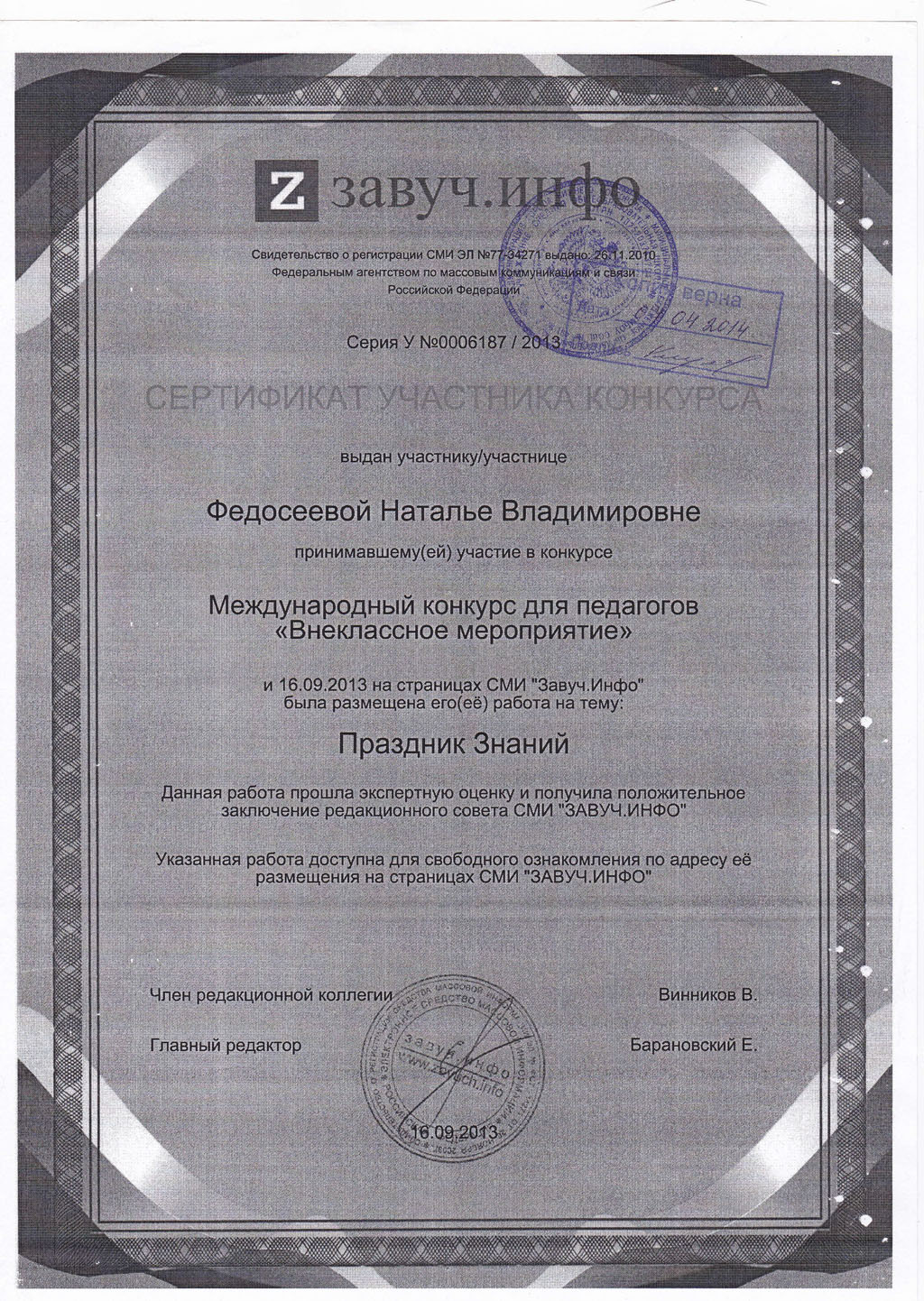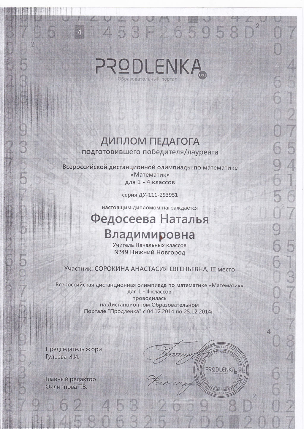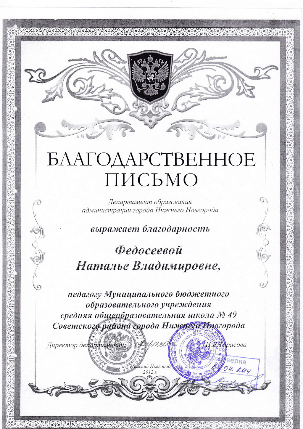 Федосеевой Натальи Владимировны